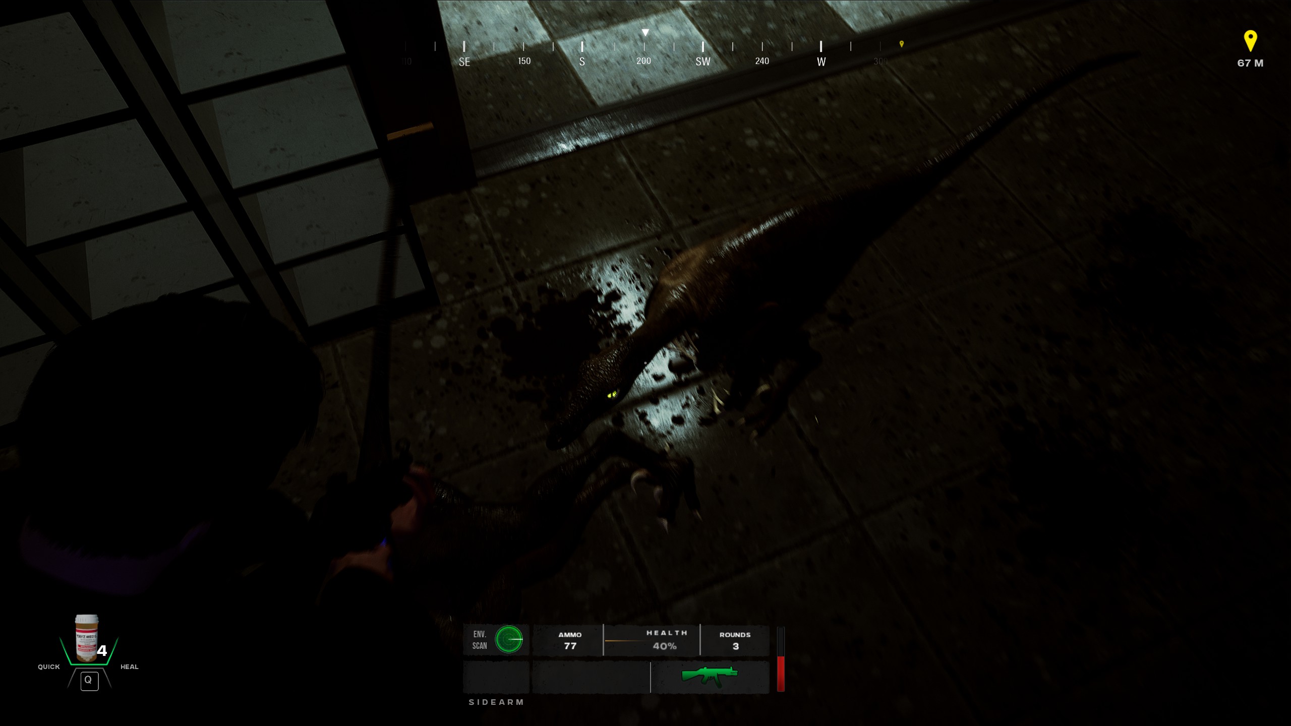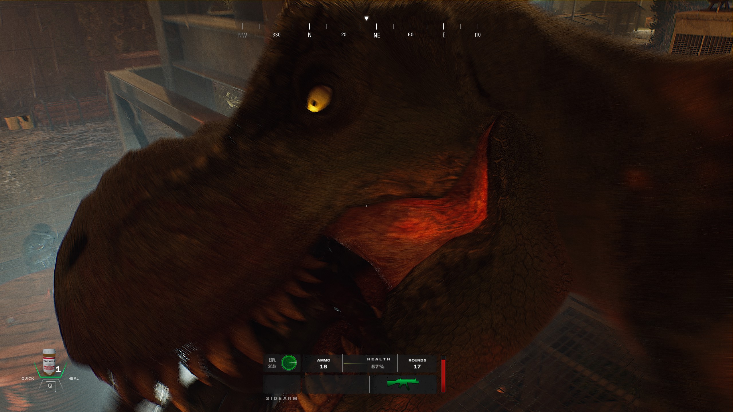 Survive against deadly dinosaurs, hostile creatures, conspiratorial human factions, and the island’s stark contrast of dense jungle and industrial decay. Piece together the clues scattered across brutalist research labs, chemical storage sites, and crumbling power stations—assisted by your training officer and sarcastic, battle-hardened brit, Vinny.